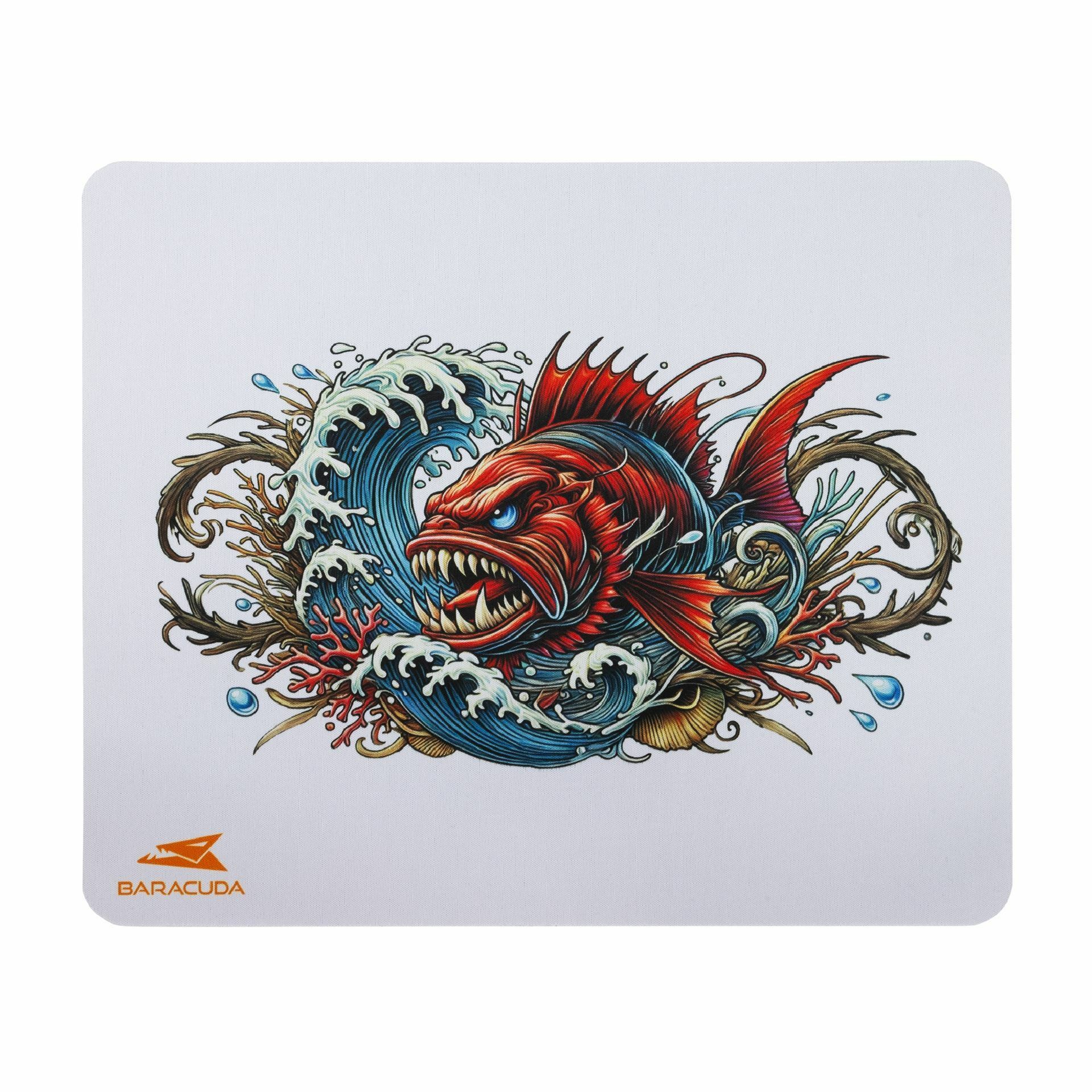 Baracuda BGMP-041 CORAL je gaming podloga za miško velikosti 300 x 250 mm in debeline 2 mm z motivom piranje. S tekstilno površino za gladko sledenje in protizdrsno gumijasto površino, ki preprečuje premikanje podloge.