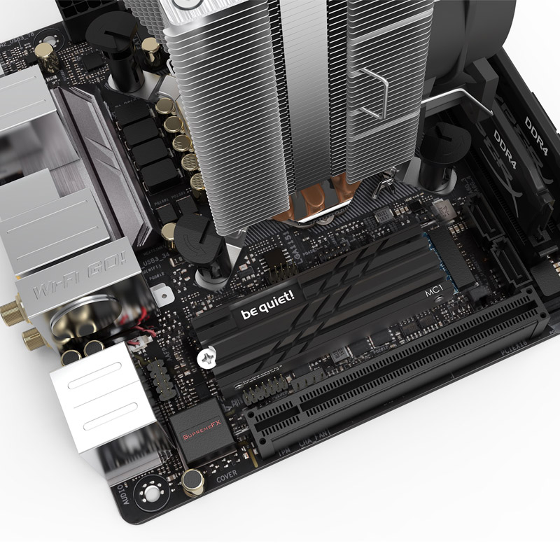 BEQUIET MC1 za M.2 SSD hladilnik zagotavlja, zanesljivo hlajenje in nižje temperature za M.2 SSD, kar omogoča polno delovanje v daljšem časovnem obdobju. Primerna je za enostranske in dvostranske module M.2 2280.