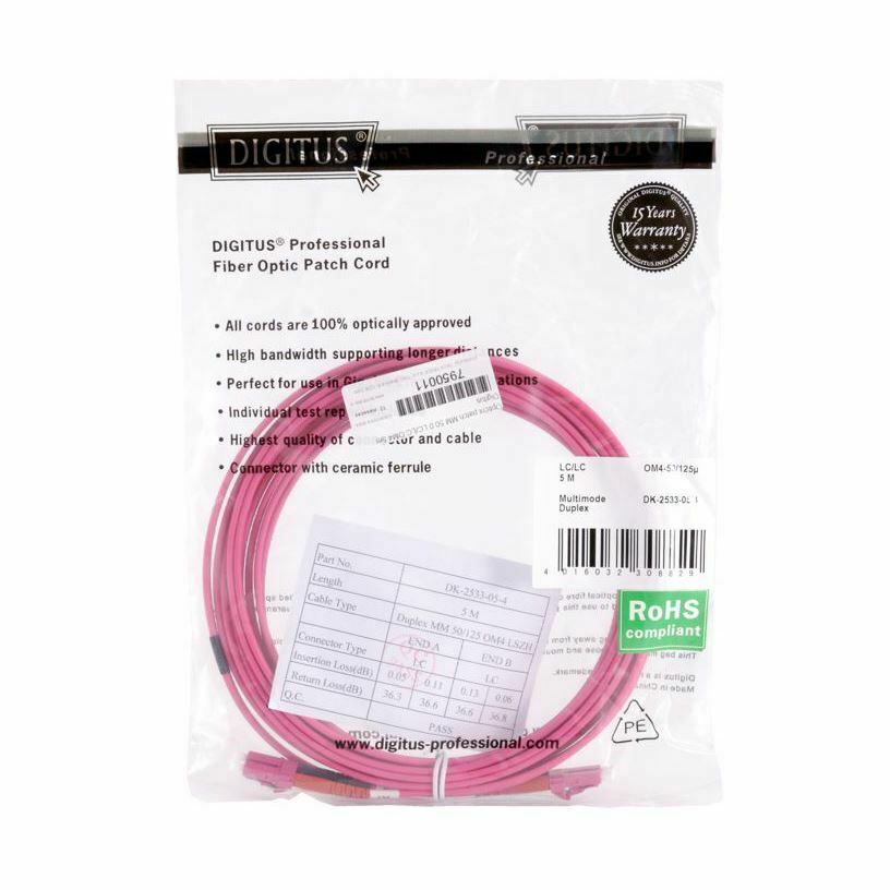 Digitus kvaliteten priključni optični kabel MM OM4 5m vijoličen za povezovanje aktivnih in pasivnih naprav v optična omrežja…