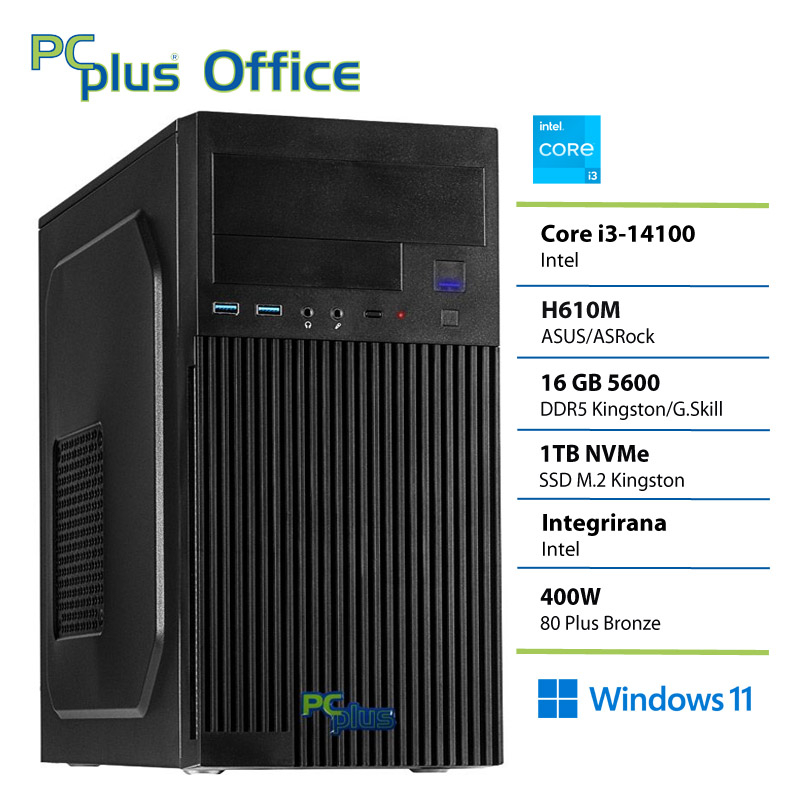 PCPLUS e-office i3 14100 16GB DDR5 1TB SSD Windows 11 Home namizni računalnik