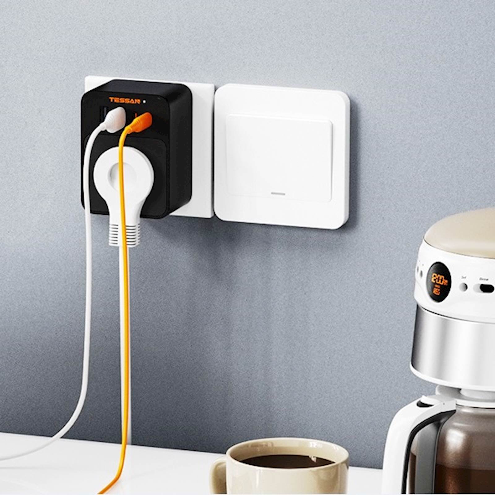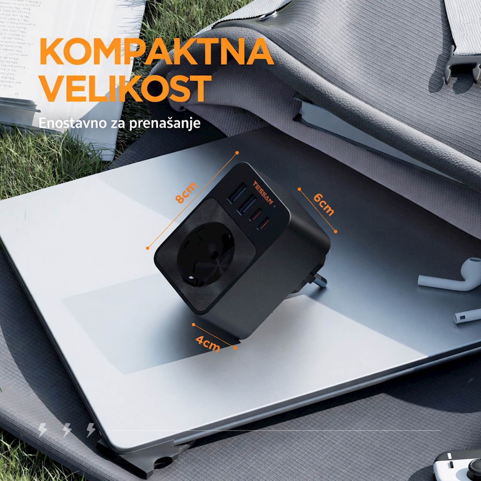 Tessan FW01DE00 vtični razdelilec TESSAN 30 W stenski razdelilnik z USB-C in USB-A priključki združuje zmogljivo hitro polnjenje, varno napajanje in sodoben, kompakten dizajn. Ta večnamenski stenski razdelilnik razširi eno vtičnico v eno AC vtičnico in štiri USB priključke (2 × USB-C in 2 × USB-A), kar omogoča hkratno napajanje in hitro polnjenje več naprav. Z močjo do 3600 W in podporo Power Delivery 30 W je primeren za telefone, tablice, prenosnike z nizko porabo in druge sodobne elektronske naprave. Naprava uporablja inteligentno upravljanje energije, ki samodejno prilagodi izhodno moč priključeni napravi ter zagotavlja stabilno, učinkovito in varno polnjenje brez pregrevanja. Zaradi kompaktne oblike, kakovostnih materialov in minimalističnega videza je idealna rešitev za dom, pisarno ali potovanja, kjer sta red in zanesljivost ključnega pomena. Ključne lastnosti 1 × AC vtičnica in 4 × USB priključki (2 × USB-C, 2 × USB-A) Podpora za hitro polnjenje Power Delivery do 30 W Inteligentno prilagajanje izhodne moči Zaščita pred pregrevanjem in preobremenitvijo Kompaktna in sodobna zasnova Primerno za dom, pisarno in potovanja Tehnične specifikacije Barva:Črna AC vtičnice:1 × 230 V USB priključki:2 × USB-C, 2 × USB-A Maksimalna moč AC:3.600 W Vhodna napetost:230 V ~ 16 A (max) Skupna USB izhodna moč:30 W USB-C izhod:5 V / 9 V / 12 V / 15 V / 20 V (do 30 W na priključek) USB-A izhod:5 V / 9 V / 12 V (do 30 W na priključek) Tehnologija polnjenja:Power Delivery (PD), hitro polnjenje Skupni DC izhod:30 W Posebne lastnosti:Kompaktna zasnova, inteligentna razporeditev moči, zaščita pred pregrevanjem in preobremenitvijo Uporaba:Dom, pisarna, potovanja Garancija:2 leti