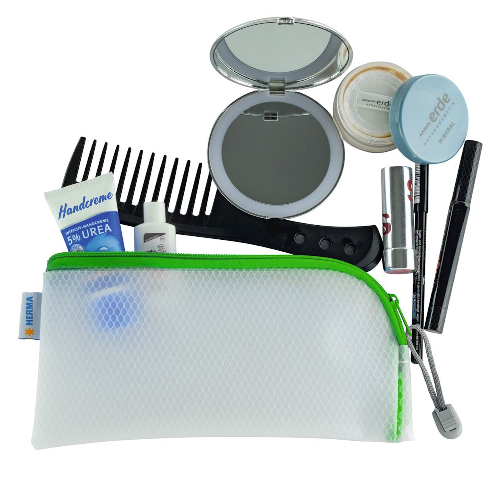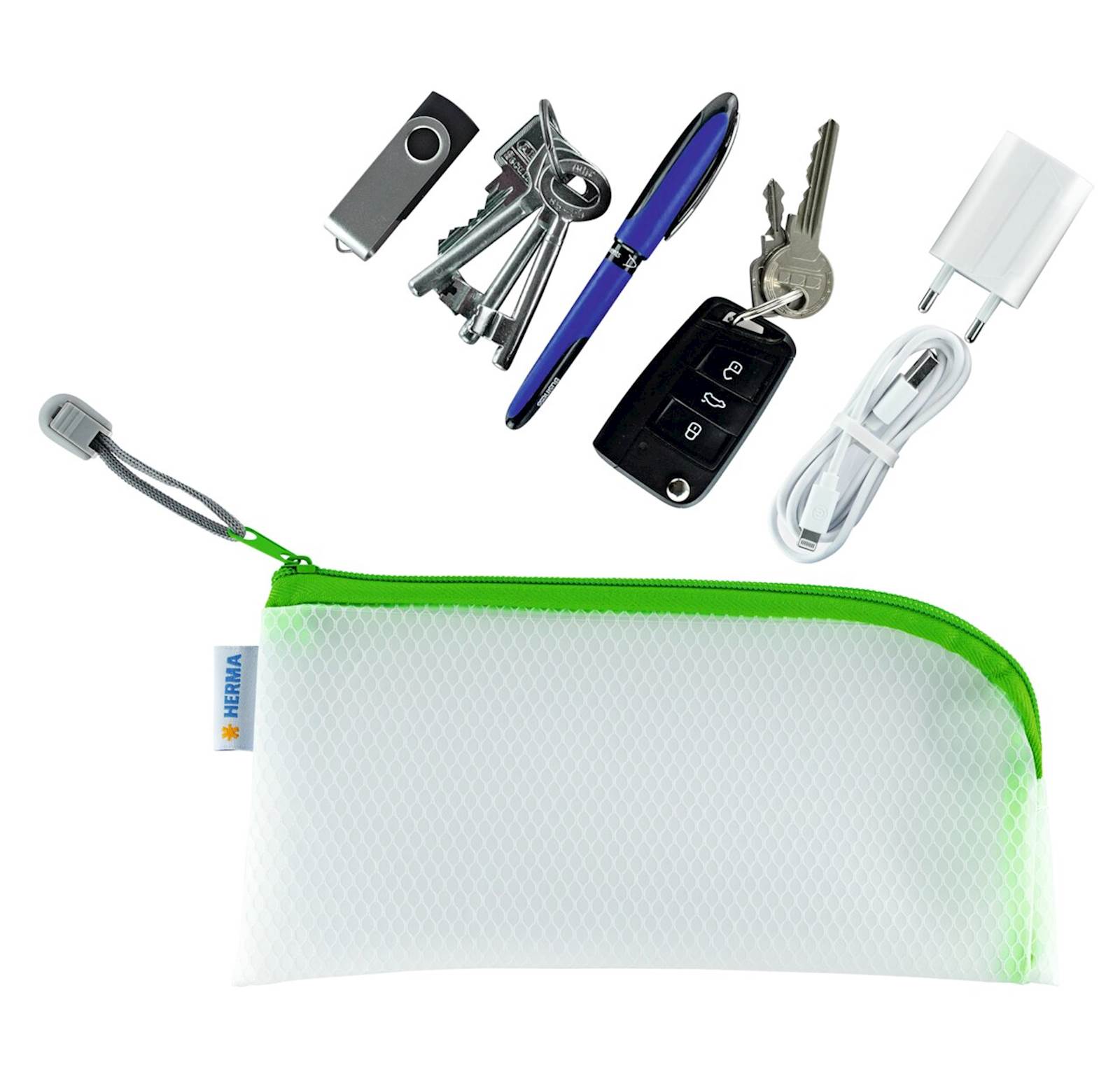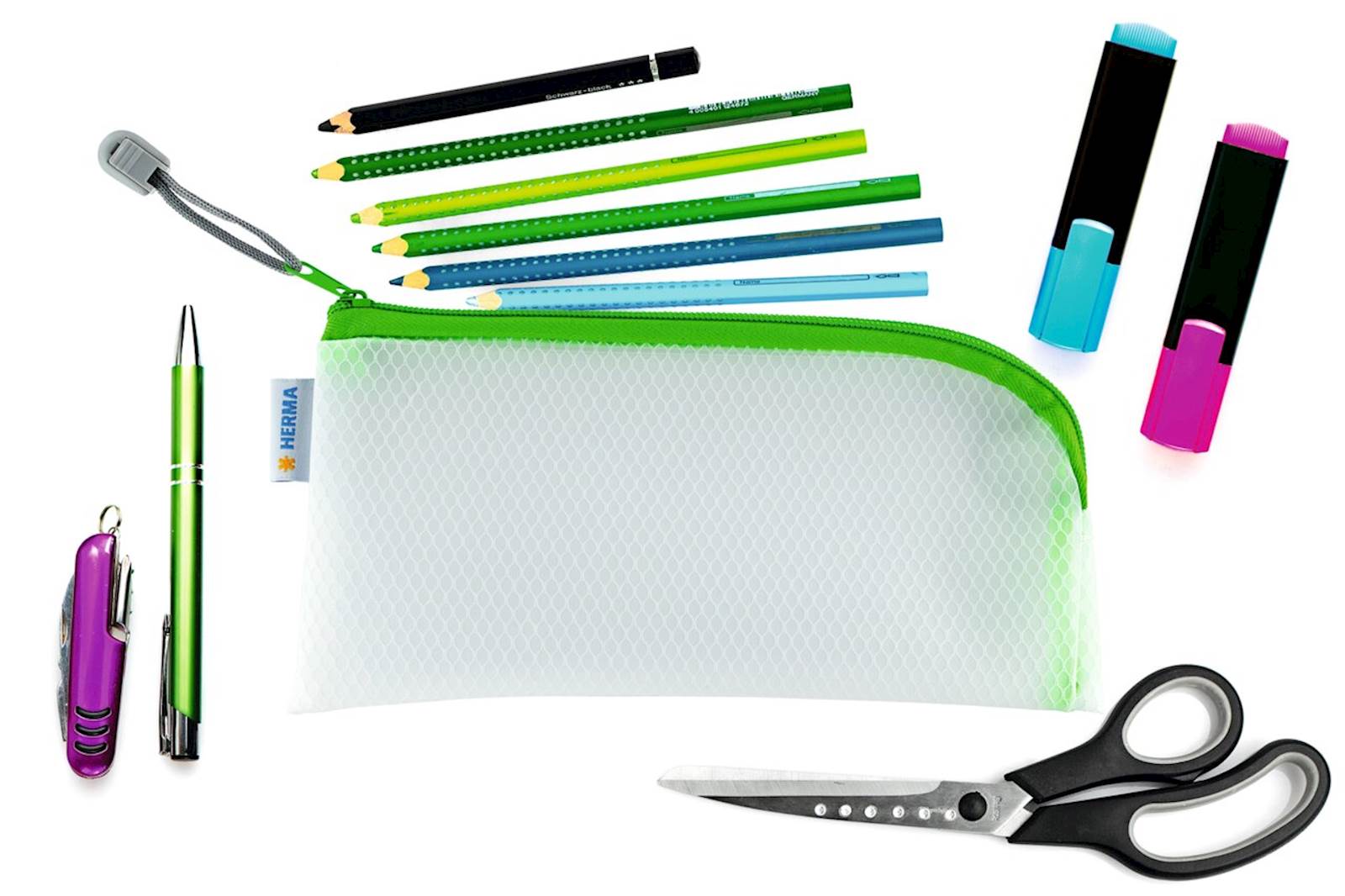 Univerzalna torbica s praktično zadrgo, zeleni robovi, 23 x 11 cm. Izdelana iz trpežnega, robustnega in vodoodpornega materiala. Zaradi vodoodpornega materiala je torbica odlična za shranjevanje na plaži, za shranjevanje kozmetike, dokumentov, za uporabo v šoli in v delavnici. Na voljo v petih barvnih različicah.