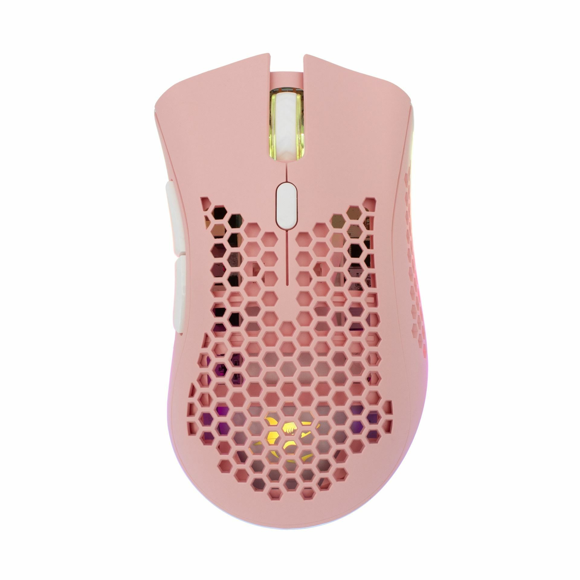 Paket vsebuje: 1x WHITE SHARK miška brezžična roza RGB WGM-5012 LIONEL Gaming, 1x Navodila